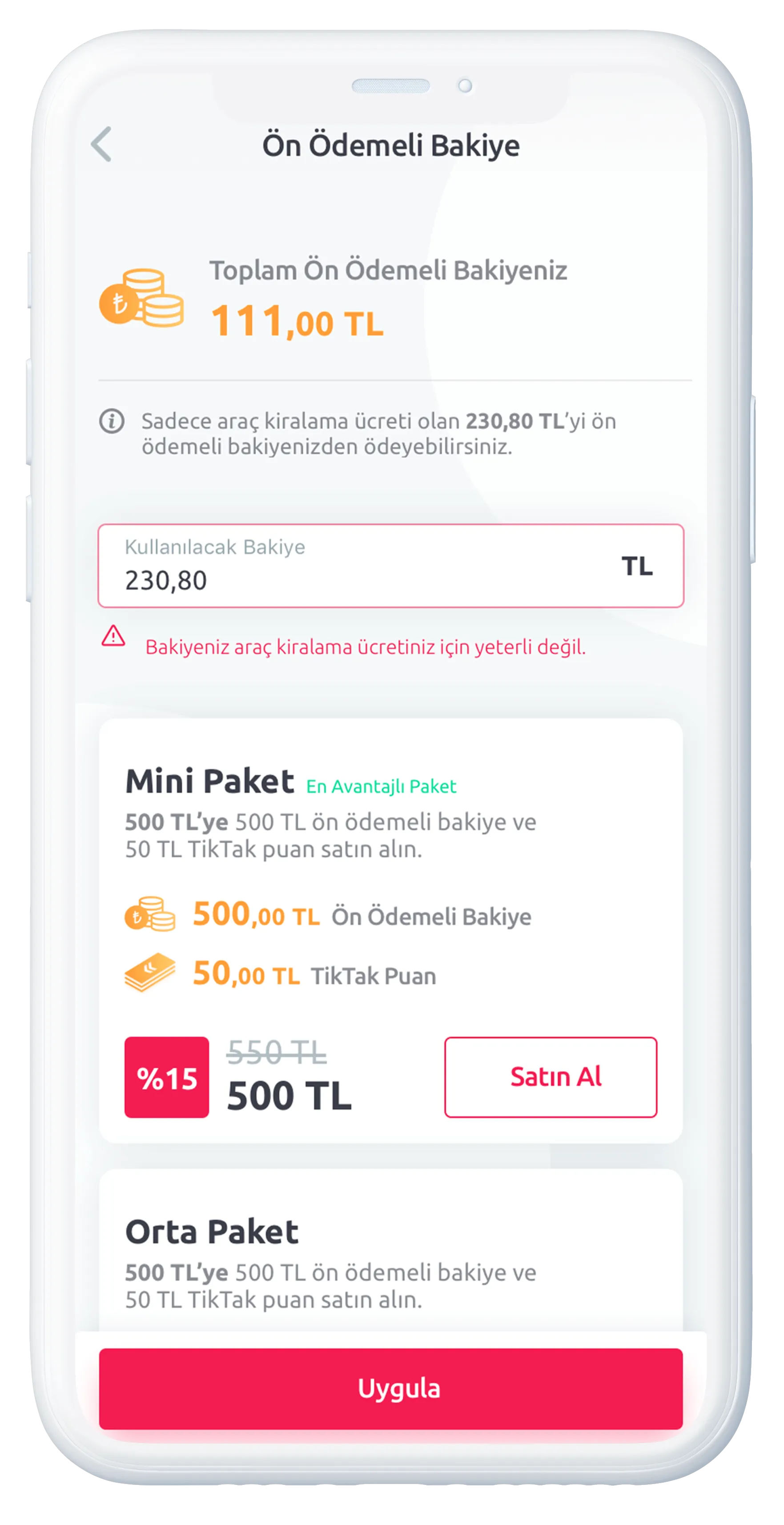 Kişinin kendi kredi kartıyla, kullandığı dakika kadar ödeme yapabileceği bir kiralama işlemidir. TikTak mobil uygulamasından “Hemen Kirala” butonuna tıklayarak Bireysel Kiralama yapabilirsiniz.